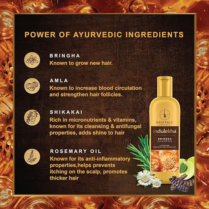 Indulekha is a clinically proven proprietary Ayurvedic medicine for hair fall, grows new hair. Enriched with Bringhraj, a herb known in Ayurveda granthas as 'Keshraj' King of hair. Extracts from the Bringhraj plant are known for their medicinal properties that not only reduce hair fall but also revive & regenerate new hair growth. Indulekha Bringha Hair Cleanser is a proprietary ayurvedic medicine recommended by Ayurvedic Experts to reduce hair fall. Every bottle of Indulekha Bringha shampoo is enriched with 9 Full Bringharaj plant extracts and 6 herbs & essential oils meticulously crafted to reduce hairfall. In addition to Bringharaj, it also contains herbs like Neem, Shikakai, Tulsi, and Amla which are known to provide a rich source of antioxidants, minerals, micronutrients, and vitamins to increase blood circulation to the scalp, strengthen hair follicles and reduce hair fall.