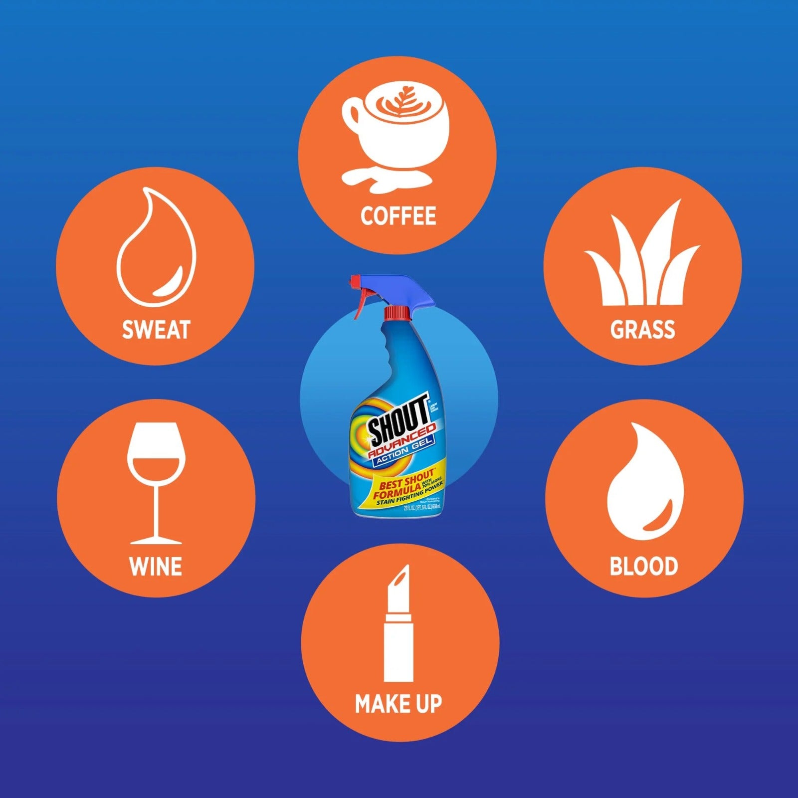 Shout Advanced Laundry Stain Remover Gel for Clothes Laundry, Breaks down stubborn, dried-in, and tough stains - 22oz Spray
