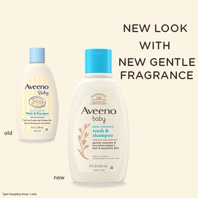 - Hair shampoo and baby body wash from Aveeno, a pediatrician recommended brand