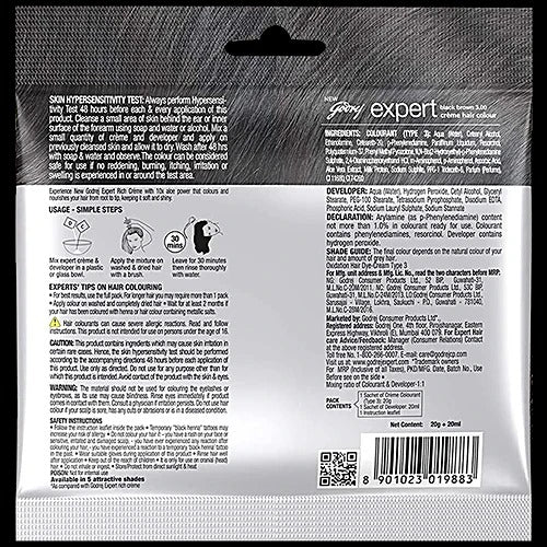 Transform your hair with the luxurious Godrej Expert Rich Creme Hair Colour. This nourishing formula delivers rich, long-lasting results with grey coverage and a vibrant, salon-like finish. Enriched with the goodness of aloe vera and milk protein, it keeps your hair unbelievably soft and shiny. The no-ammonia formula ensures minimal damage, while the pre-measured sachets make application a breeze. Colour your hair and do root touch-ups right in the comfort of your home - it's so convenient! Available in 5 beautiful shades, including natural black, black brown, burgundy, dark brown, and natural brown. Get beautiful coloured hair that stays vibrant for up to 8 weeks. Enjoy your new look for longer with this luxurious and nourishing hair colour from Godrej.