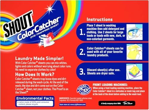 Shout Color Catchers for Laundry, Allow Mixed Washes, Prevents Color Runs and Maintains Original Clothing, 24 Count